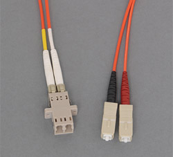 Hochwertiges Adapterkabel SC Stecker auf LC Buchse, Ausführung, Faser 62,5/125µm Multimode OM1. Die LC Buchsen sind mit hochwertigen Keramikferrulen ausgestattet.